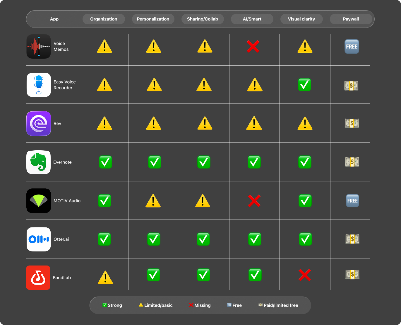 → Voice memos is valued for its simplicity and convenience
