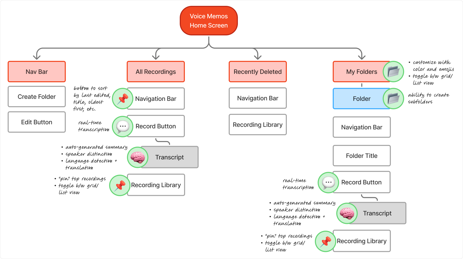 Apply a human-centered approach to redesign the Voice Memos app, leveraging user interviews and competitor research to upgrade organization tools and integrate AI capabilities.