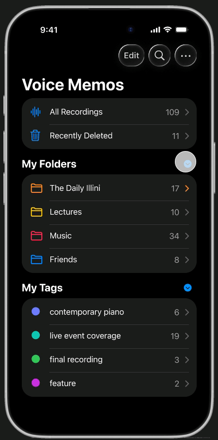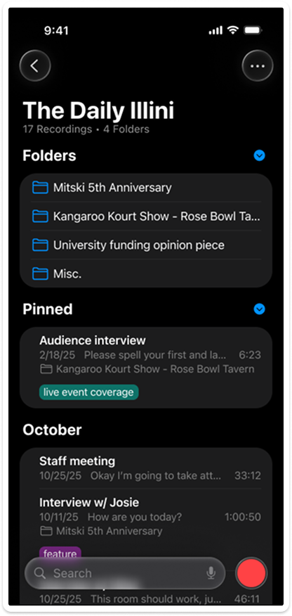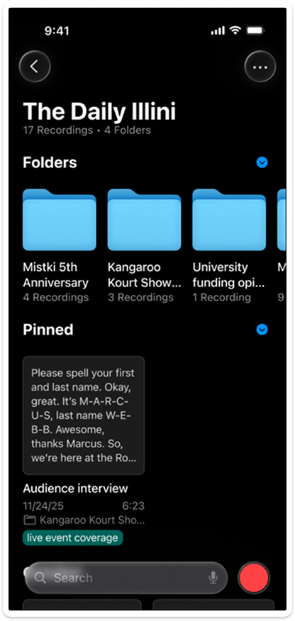 An expanded organization system that lets users group recordings by project or topic with custom, multi-level folders and tags